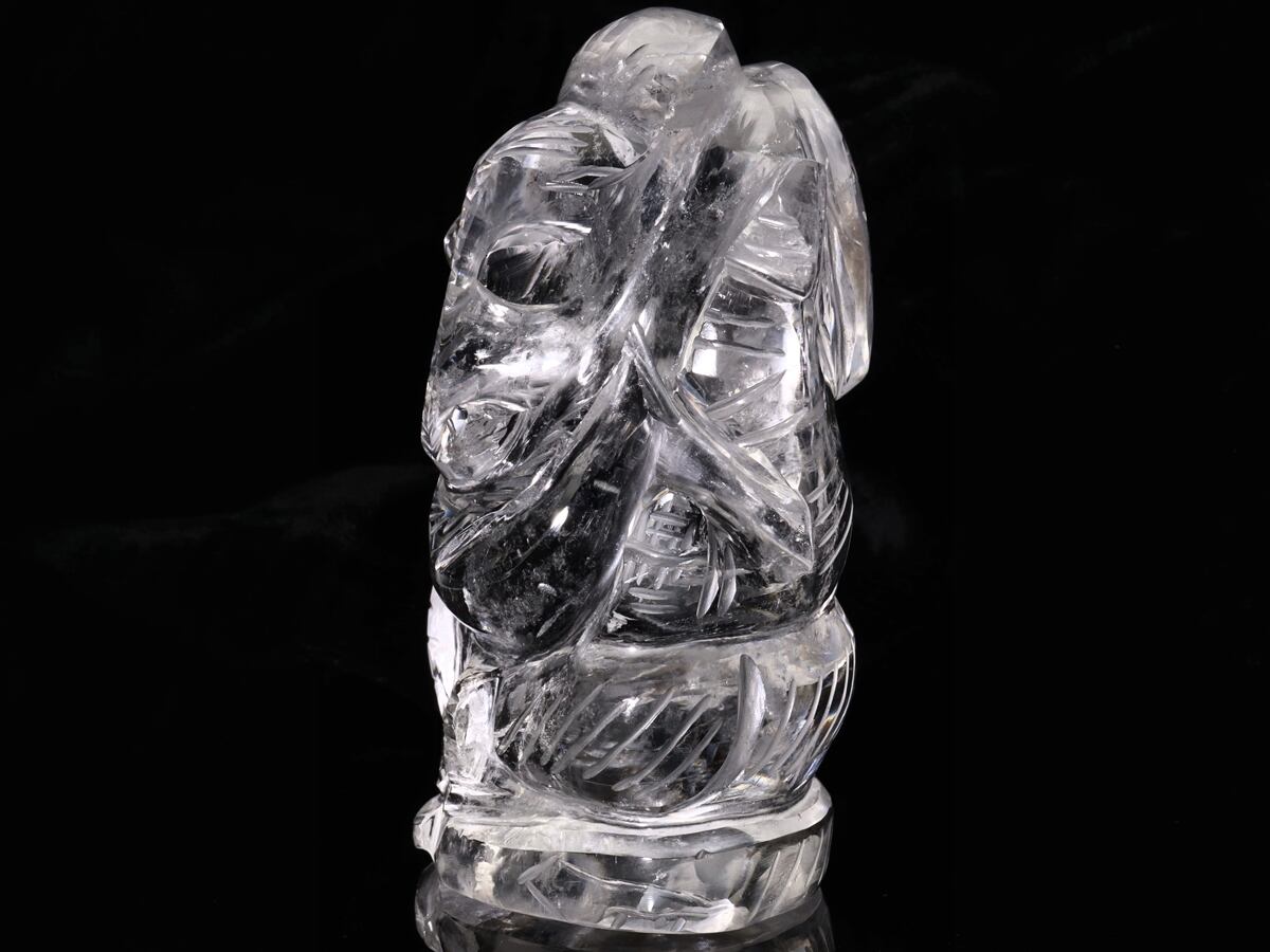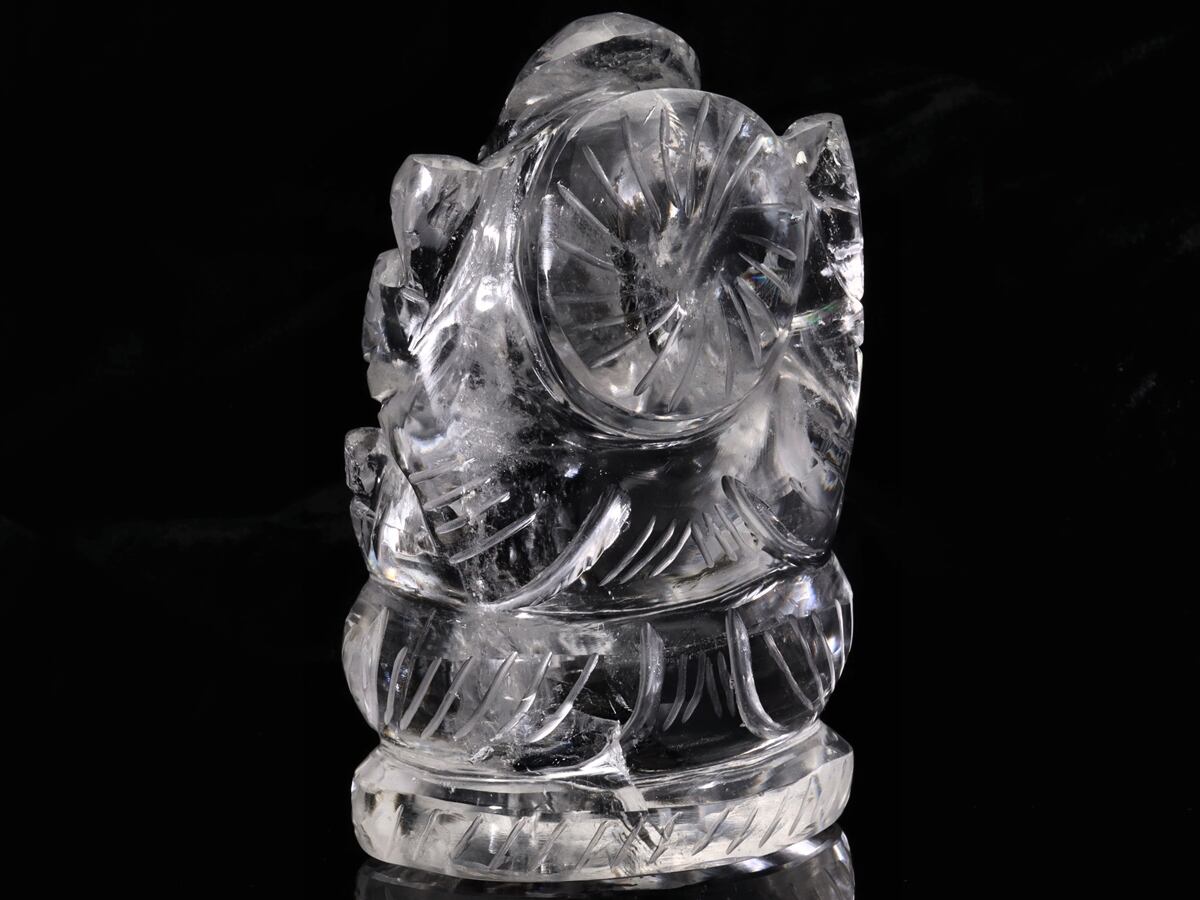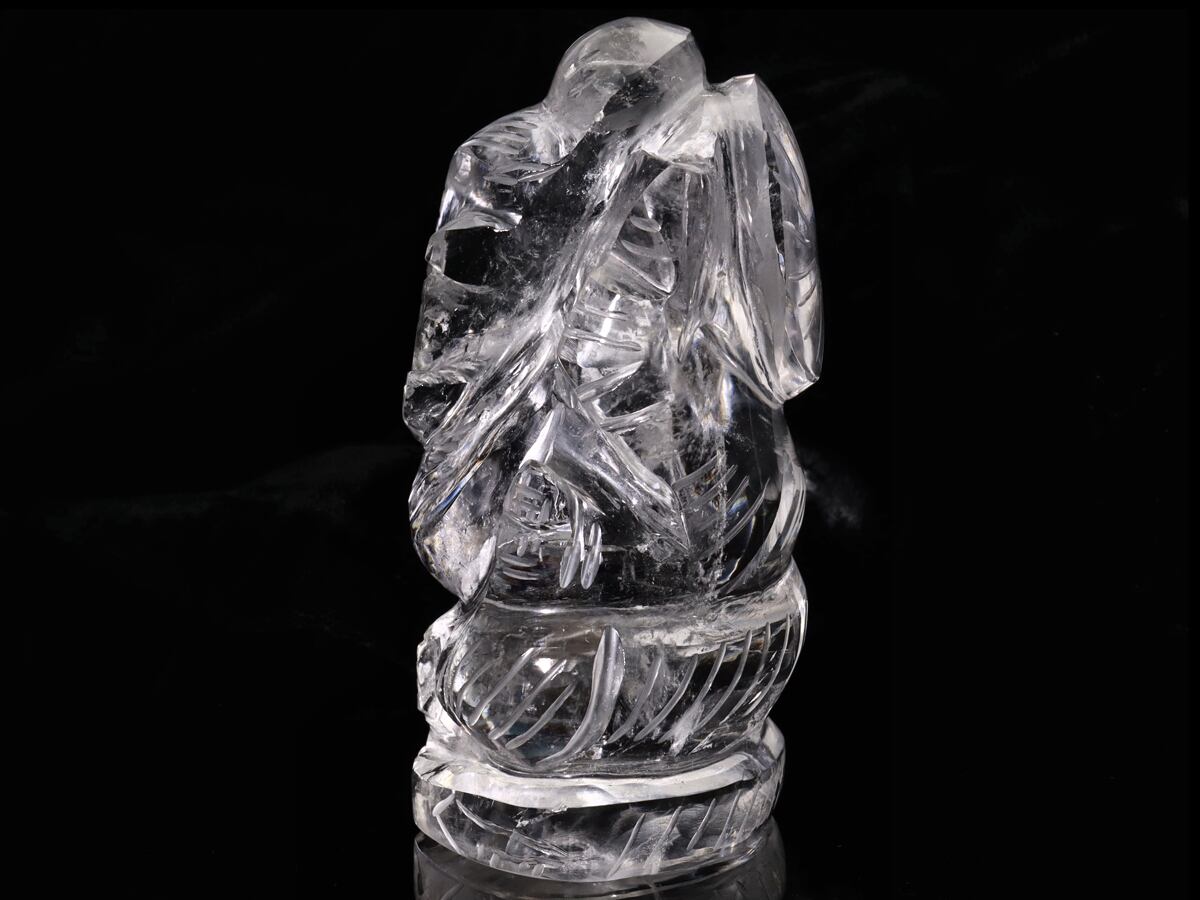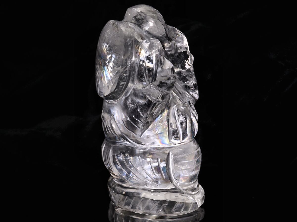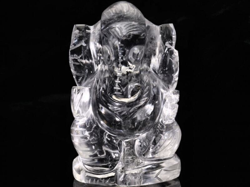 ヒンドゥー教の神『ガネーシャ』を彫り込んだ、ハンドメイドの水晶置物です。