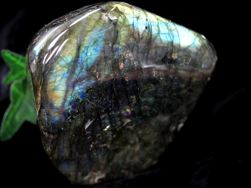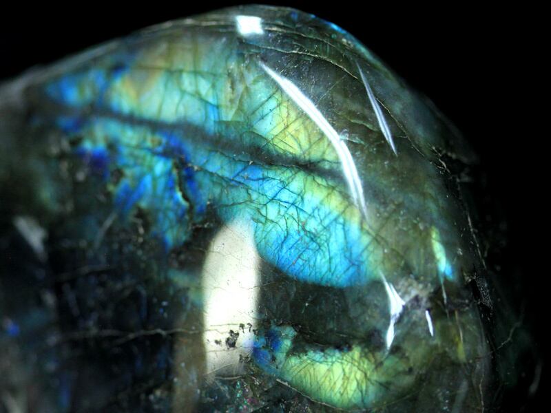 ブルーを中心にグリーンやイエローなどの強い『ラブラドレッセンス(ラブラドルの光)』の輝きが見られます。
