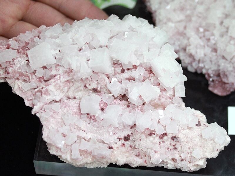 淡いピンクの色味と、キューブ状態の美しい結晶が見られる高品質なクラスターです。