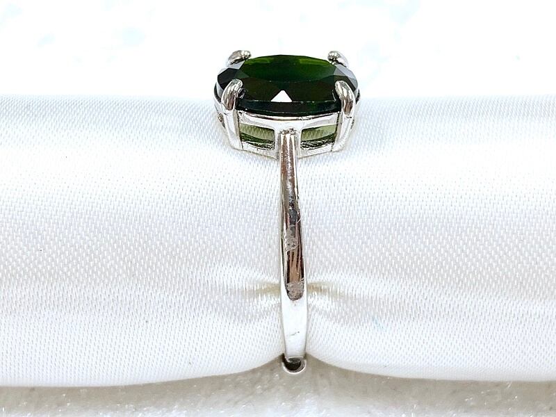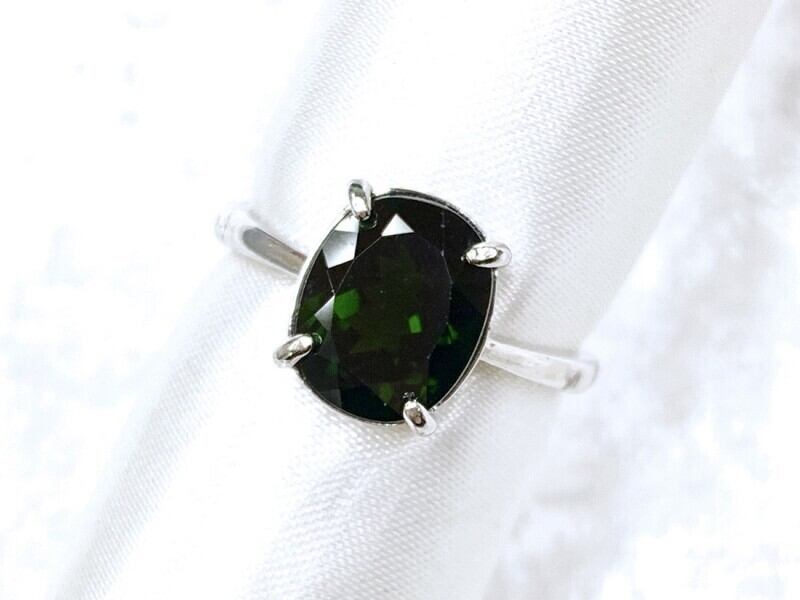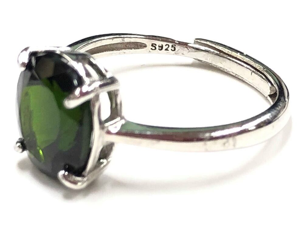 落ち着いたダークグリーンカラーが印象的なダイオプサイトのシルバーリング。