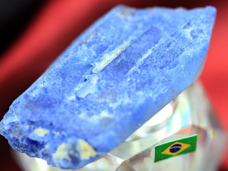 水晶に内包された独特の青い結晶が美しい、デュモルチェライトインクォーツ。