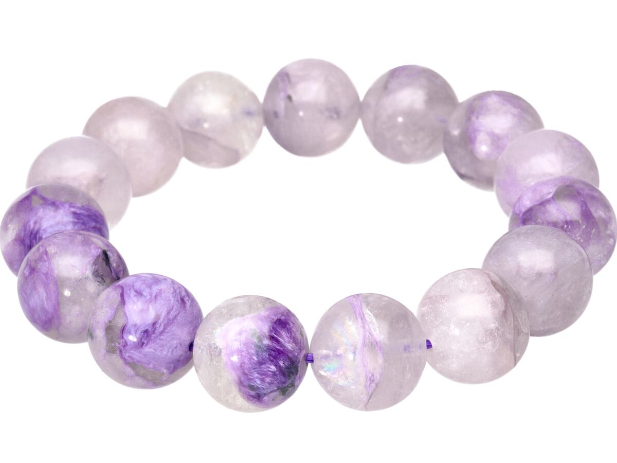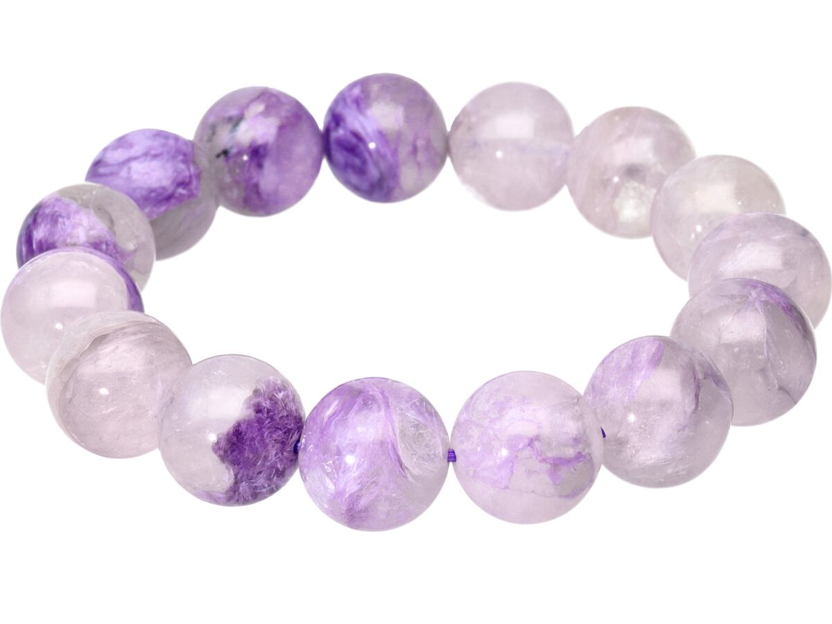 【1点物】天然石ブレスレット エンジェルシリカ チャロアイトクォーツ チャロ石 /ラウンド/約14mm/1本 優しい癒しの力 天然石/パワーストーン