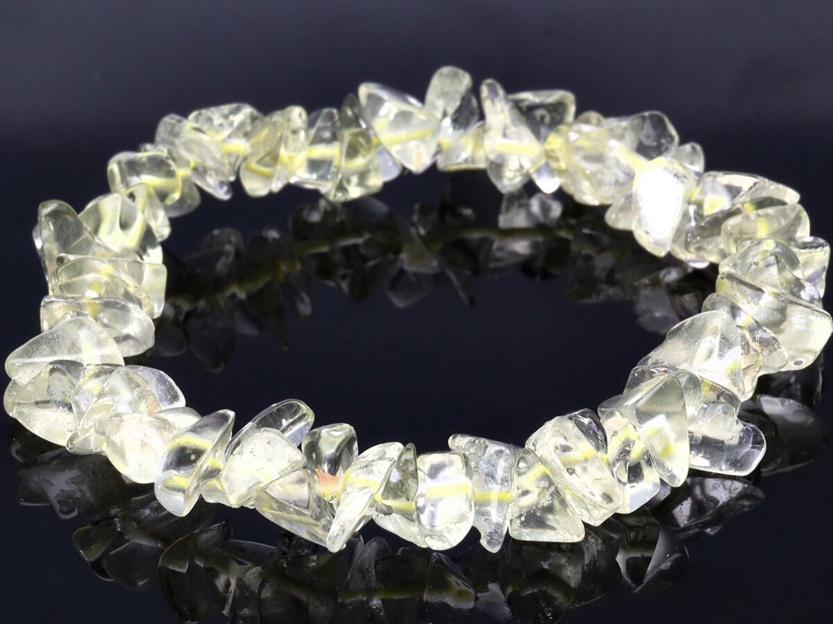 【1点物】天然石ブレスレット リビアングラス Libyan glass /チップスカット(さざれ)/約9×4mm/1本 天然石/パワーストーン