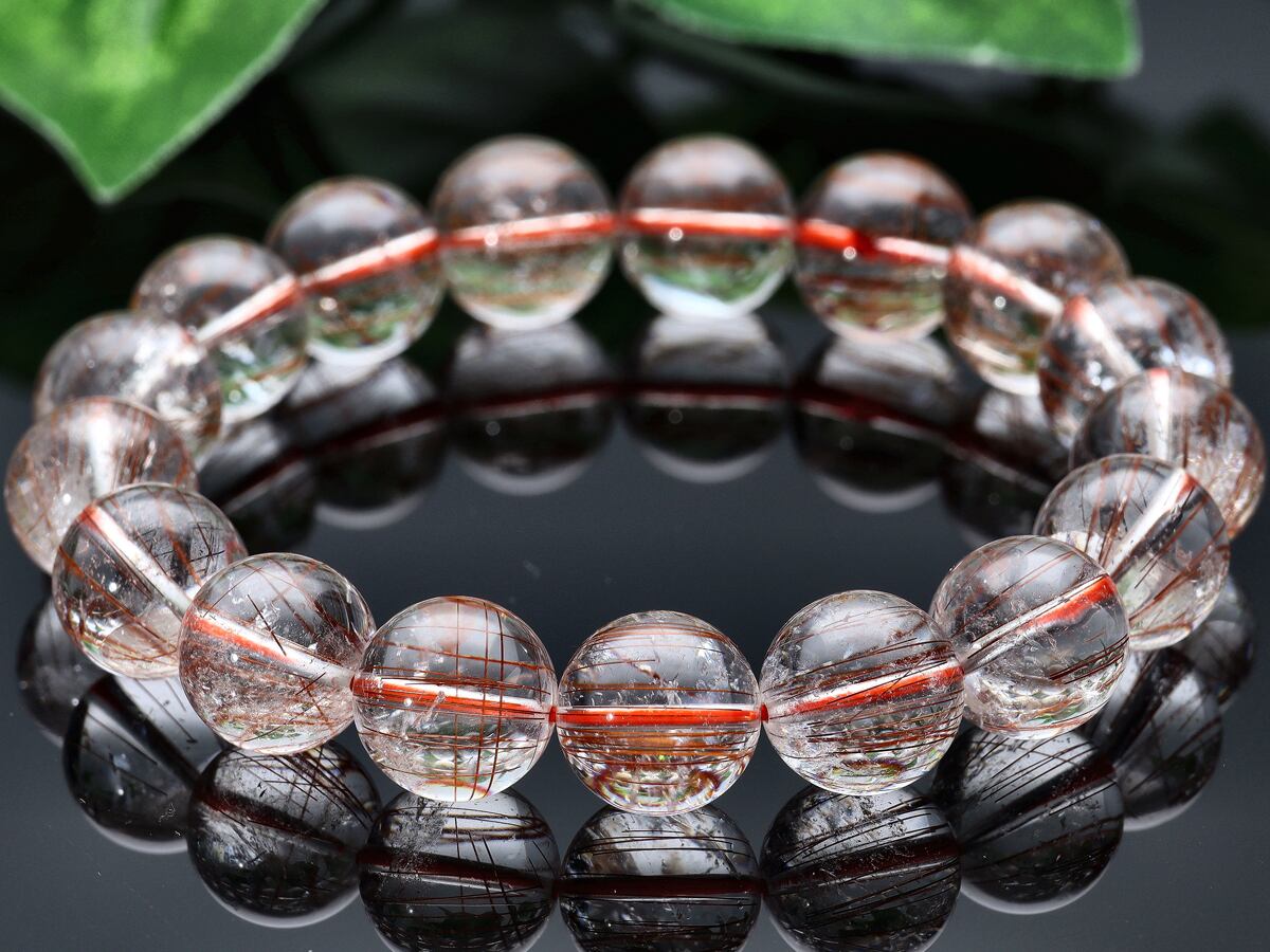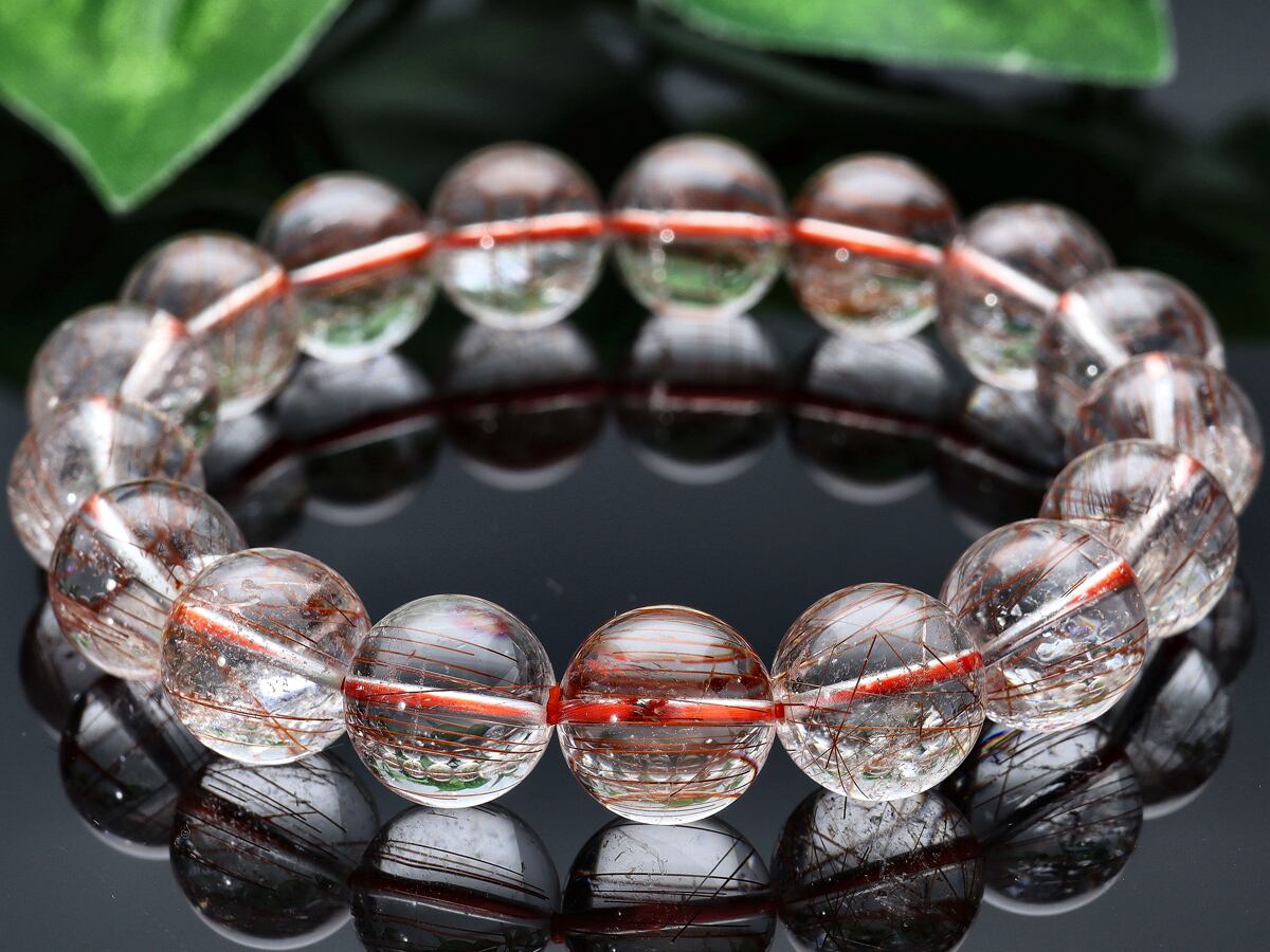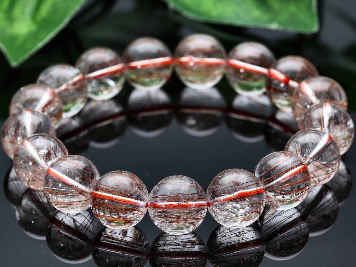 【1点物】天然石ブレスレット オレンジレッドルチルクォーツ ルチレイテッドクォーツ /ラウンド/約12mm/1本 金運・財運の石 天然石/パワーストーン