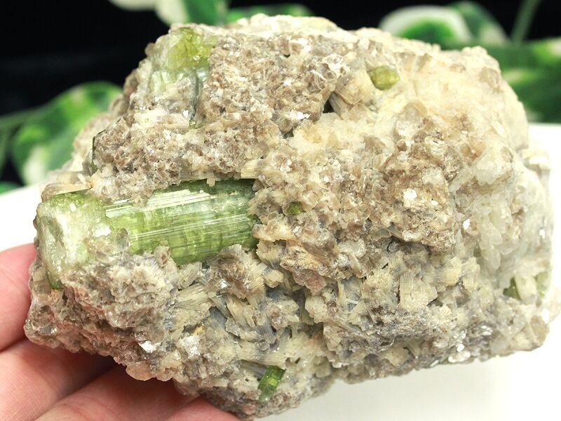 【1点物】天然石 グリーントルマリン ベルライト 母石付きラフ原石 /398g パイライト・カルサイト結晶共生母岩付き