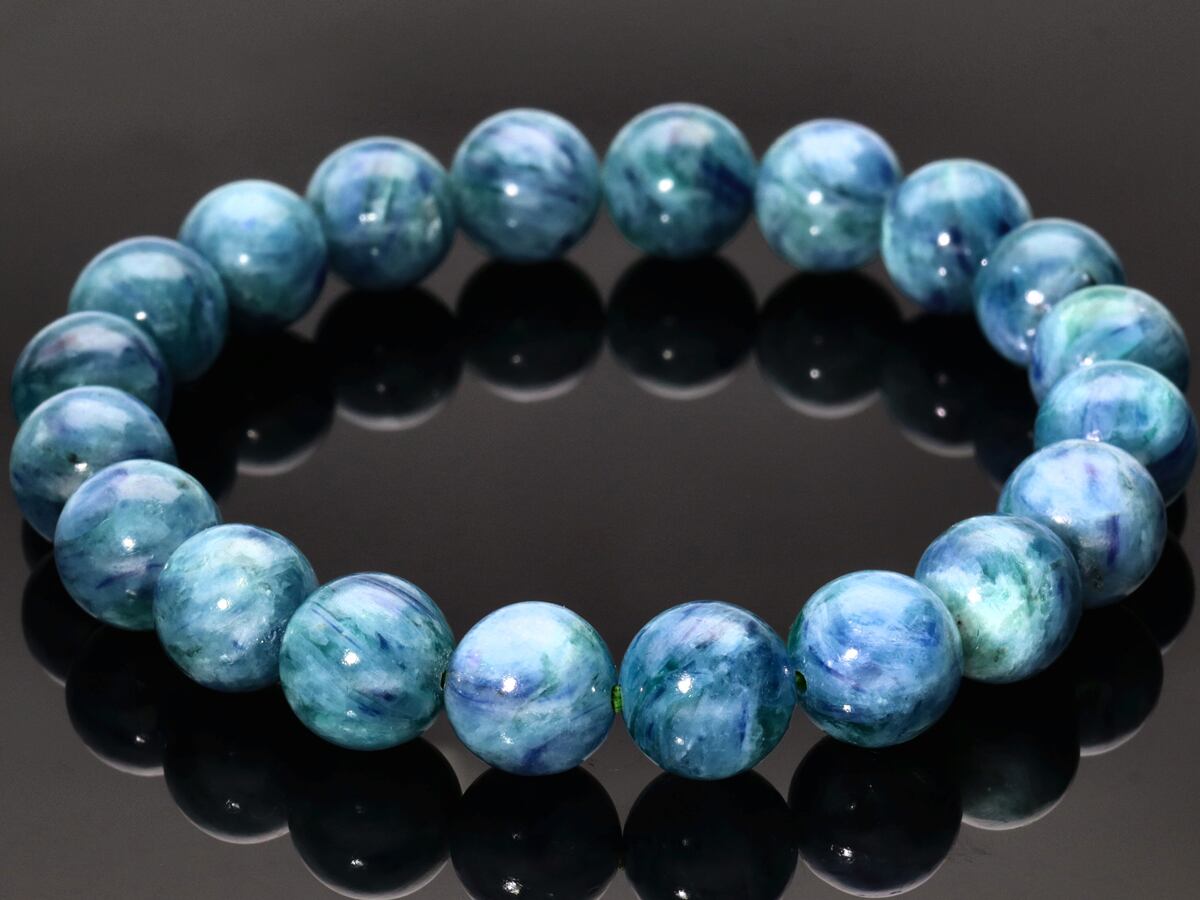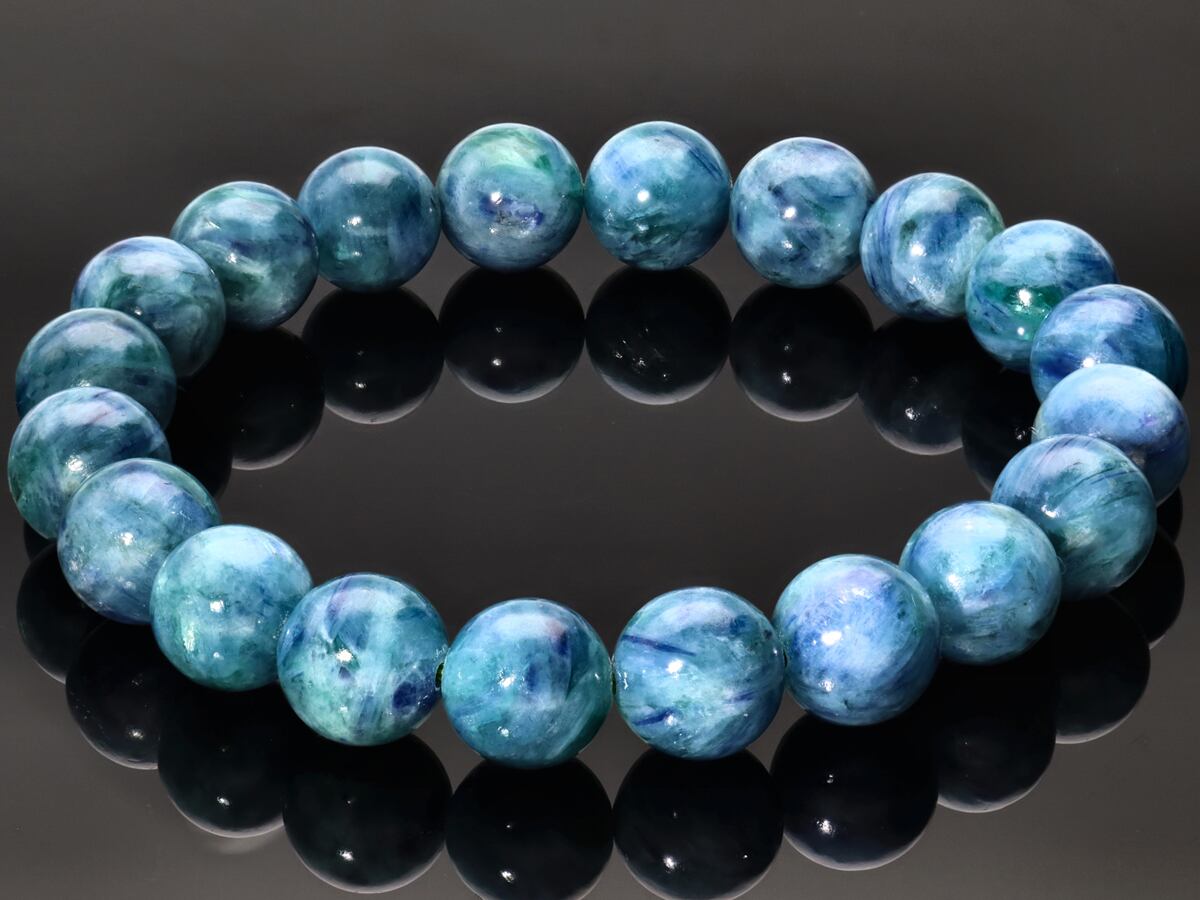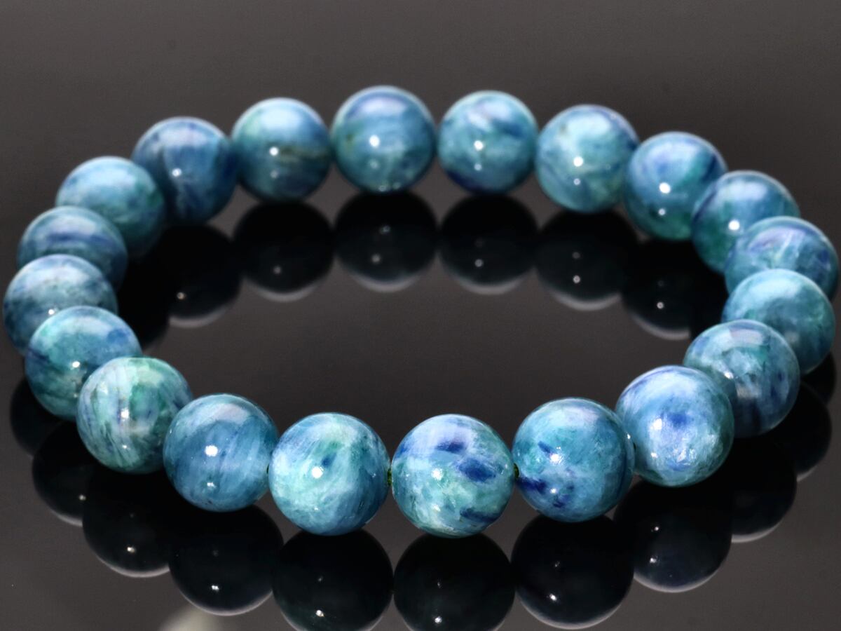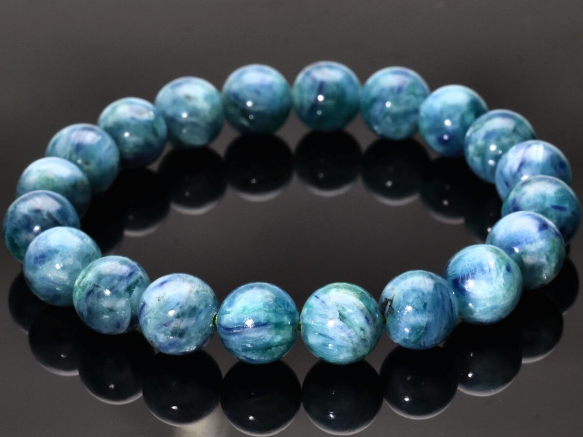 【1点物】天然石ブレスレット カイヤナイトインフックサイト 藍晶石/クロム雲母 /ラウンド/約9mm/1本 天然石/パワーストーン