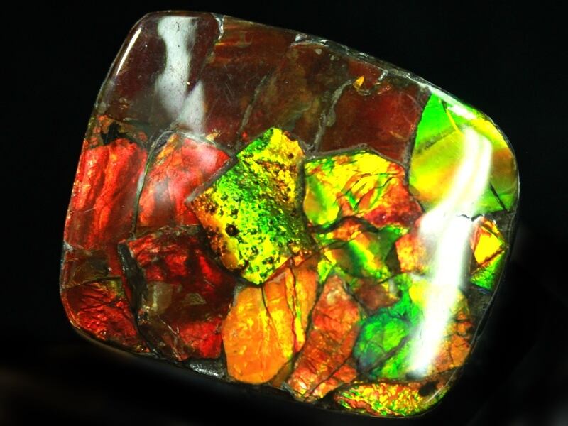 アンモライトとは、アンモナイトの化石が7000万年時を経て作り出され、その表面にアラゴナイトが付着してイリデッセンス効果を発する化石宝石です。正式に「宝石」として世界的に認められています。