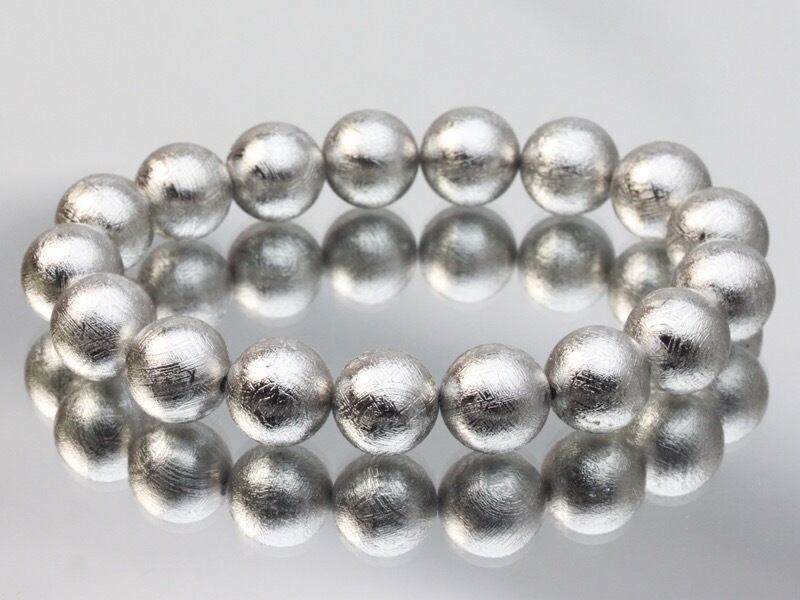 【1点物】天然石ブレスレット ギベオン 隕石 メテオライト Gibeon シルバー /ラウンド/12mm 天然石/パワーストーン