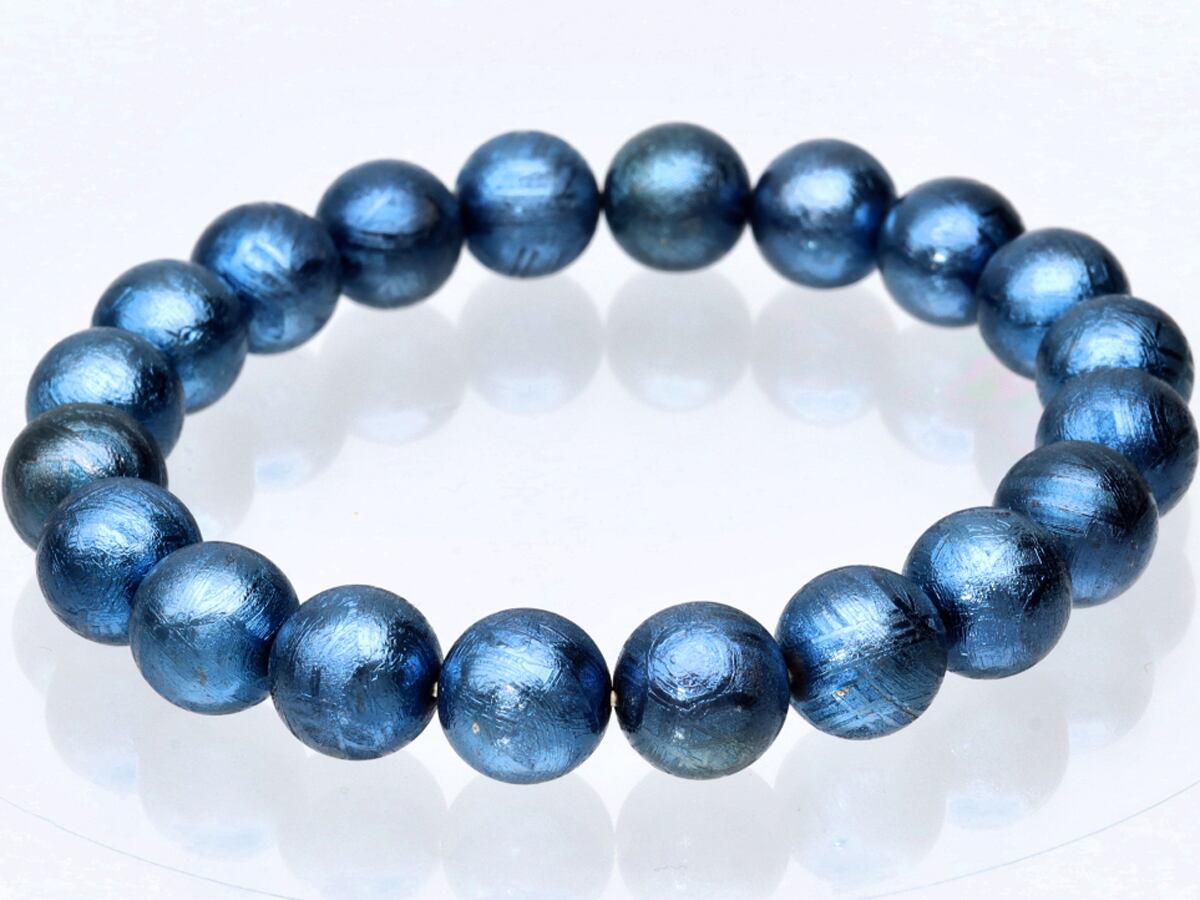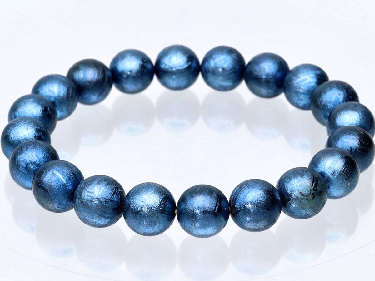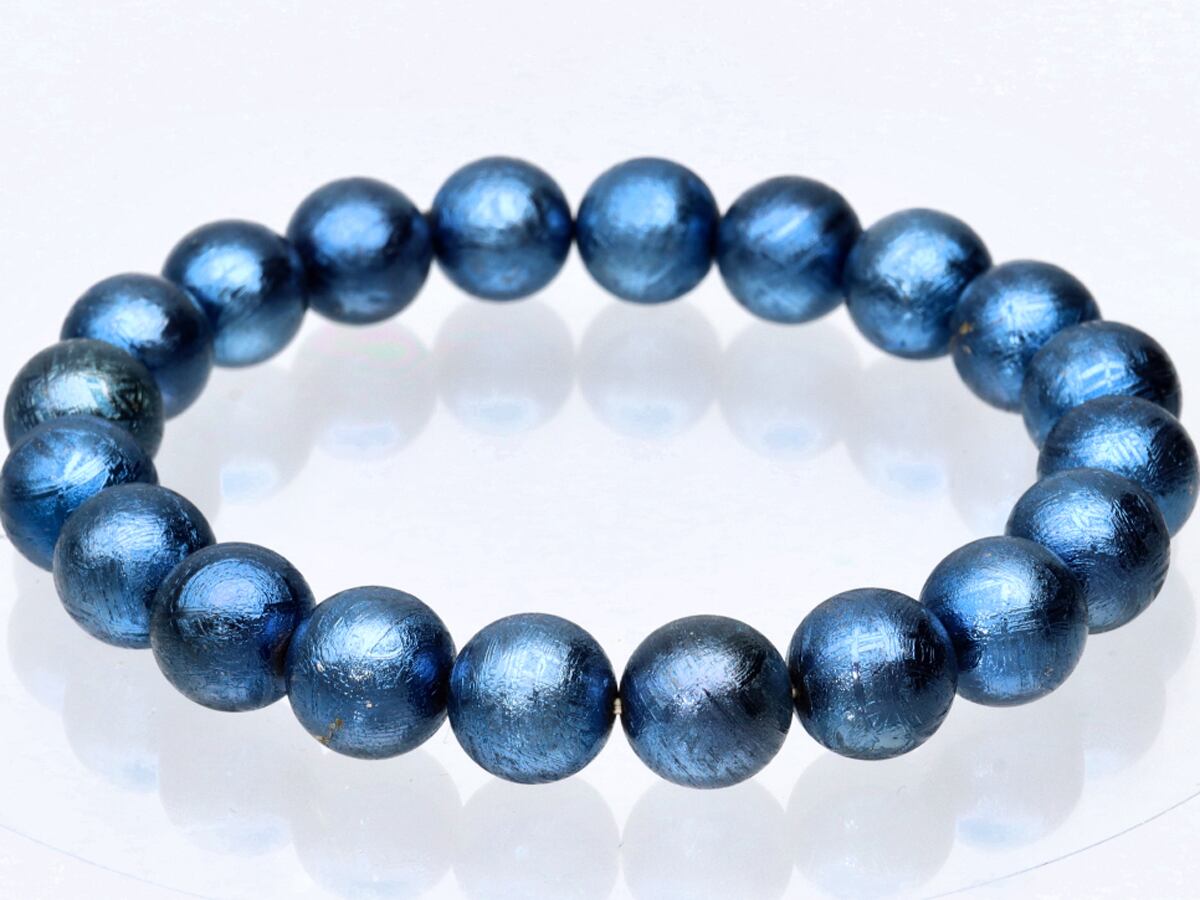 【1点物】天然石ブレスレット ギベオン 隕石 メテオライト Gibeon ブルー /ラウンド/10mm 天然石/パワーストーン