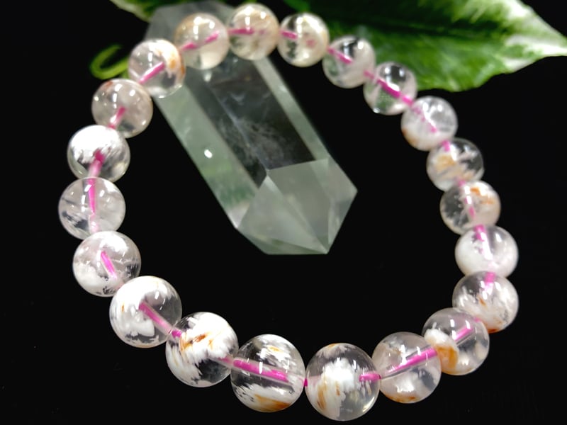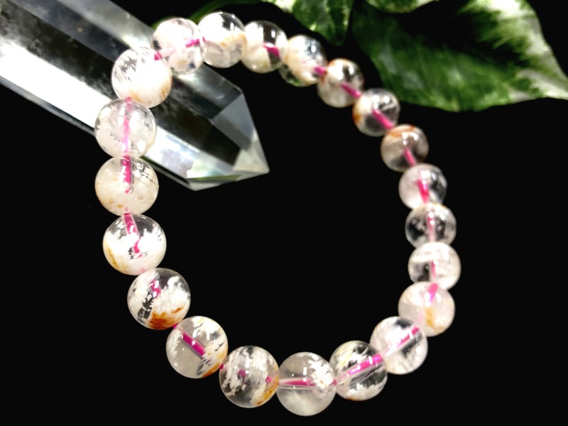 【1点物】天然石ブレスレット スノーガーデンクォーツ snow garden quartz 庭園水晶 /ラウンド/約9mm/1天然石/パワーストーン