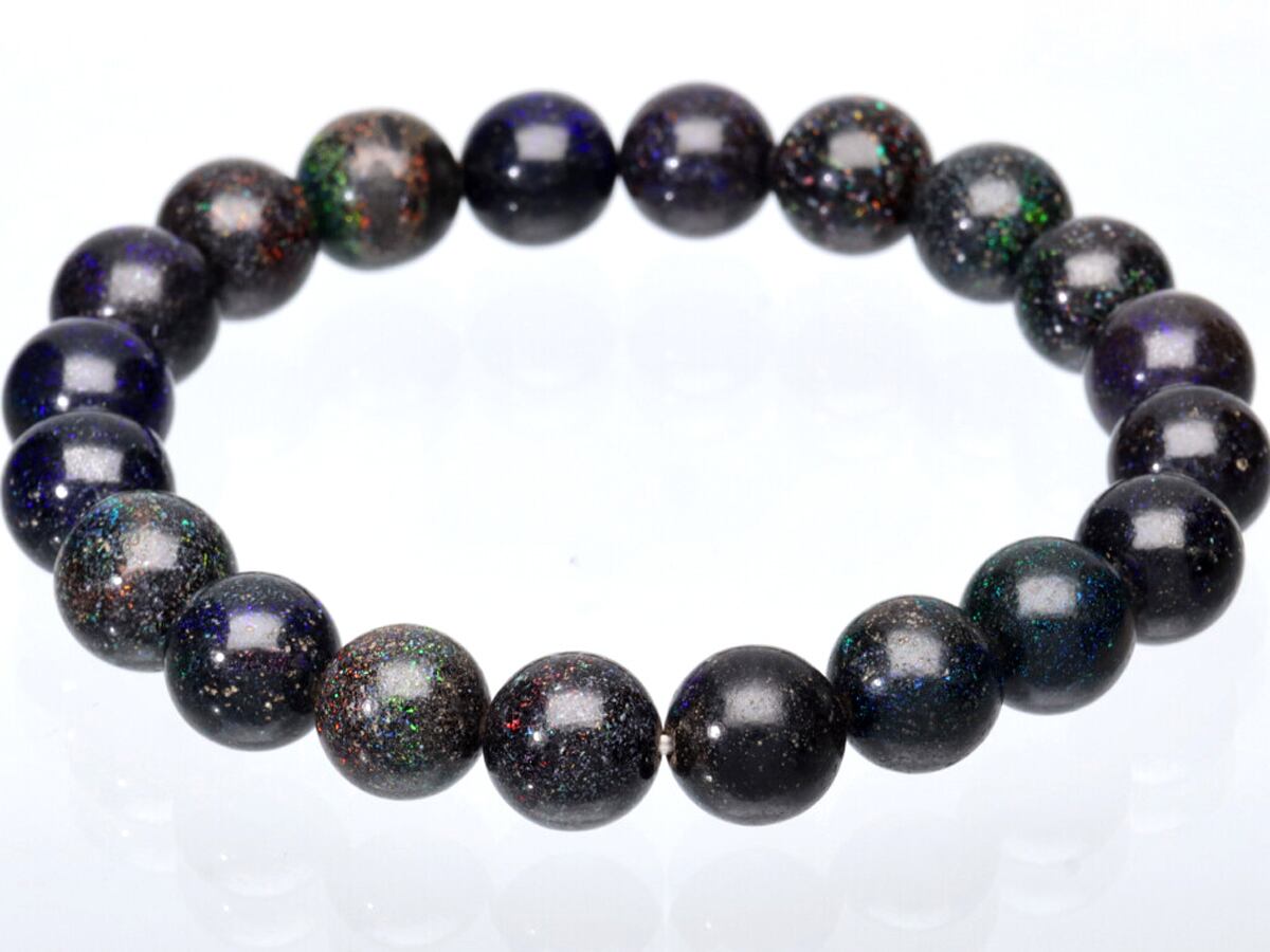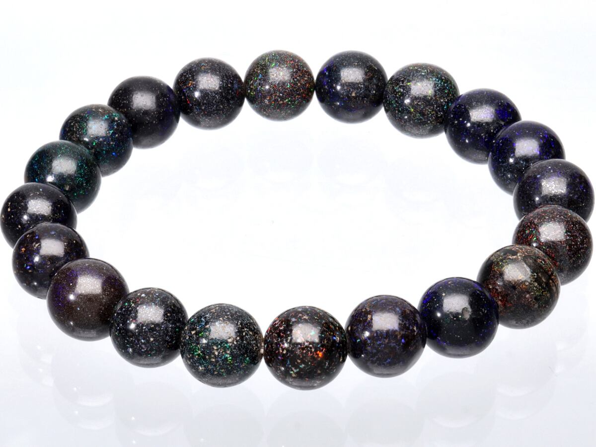 【1点物】天然石ブレスレット ブラックマトリックスオパール oparl /ラウンド/約10mm/1本 USAアメリカ産 天然石/パワーストーン