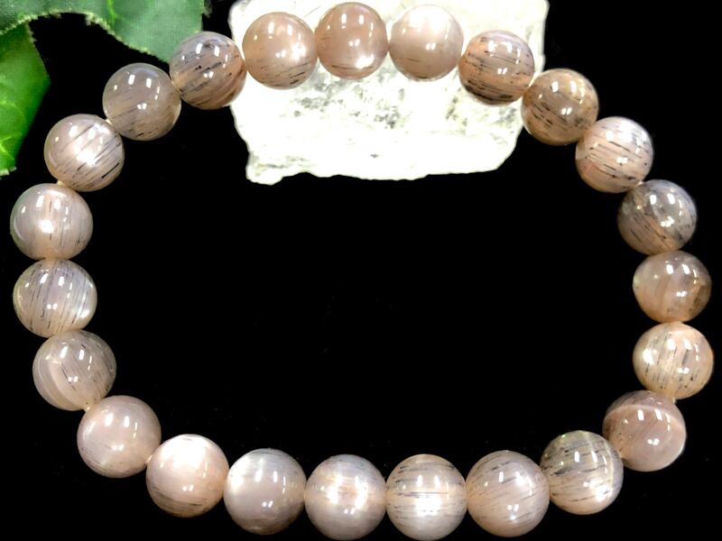 【1点物】天然石ブレスレット ヒマラヤピンクシルバーサンムーンストーン sunstone moonstone /ラウンド/約8mm/1本 ヒマラヤ産 天然石/パワーストーン