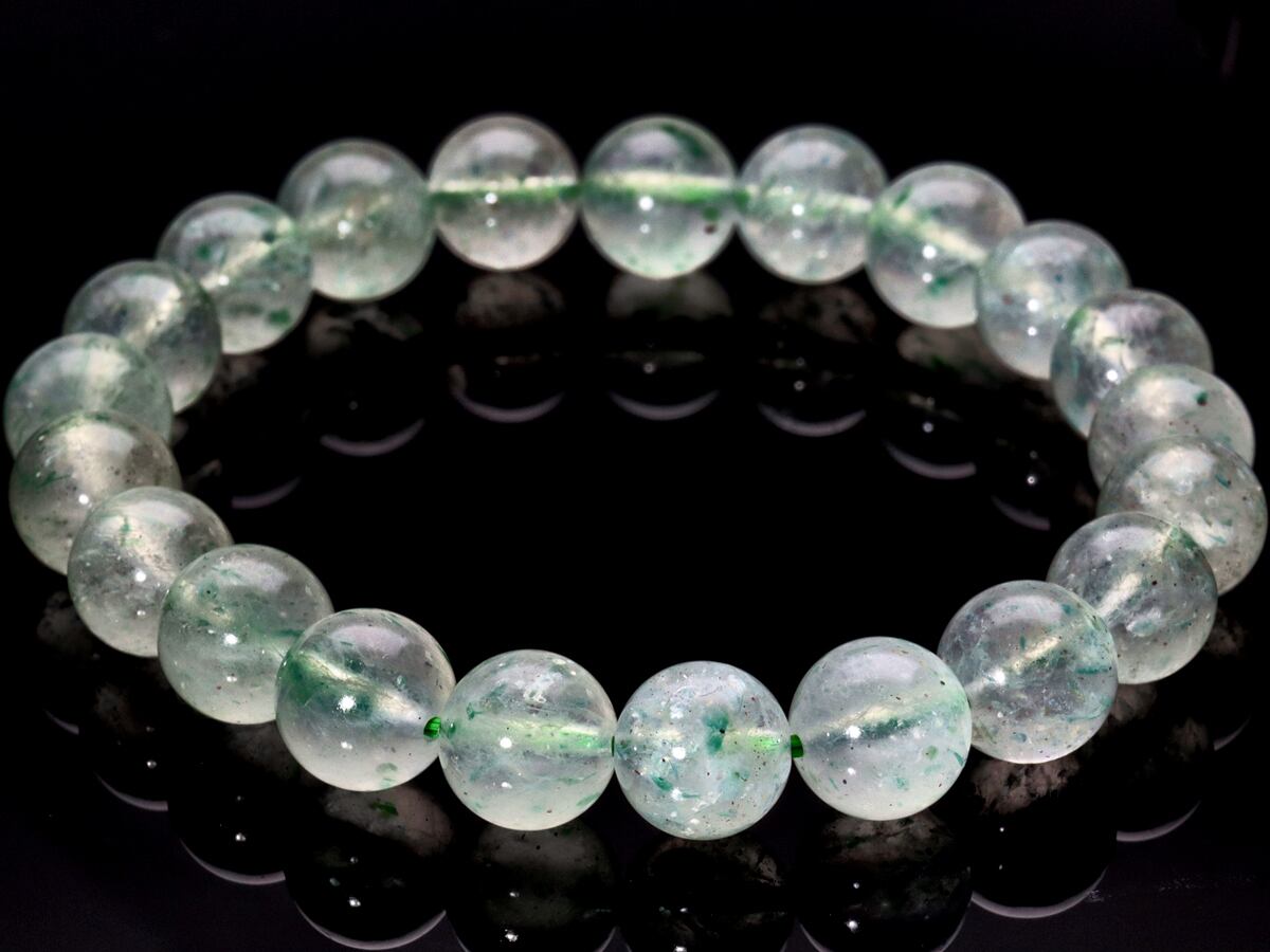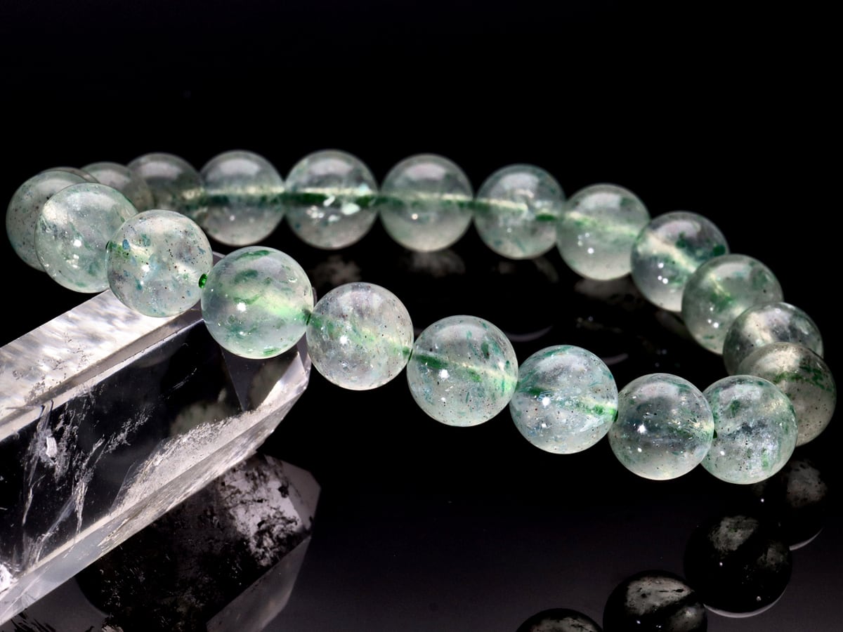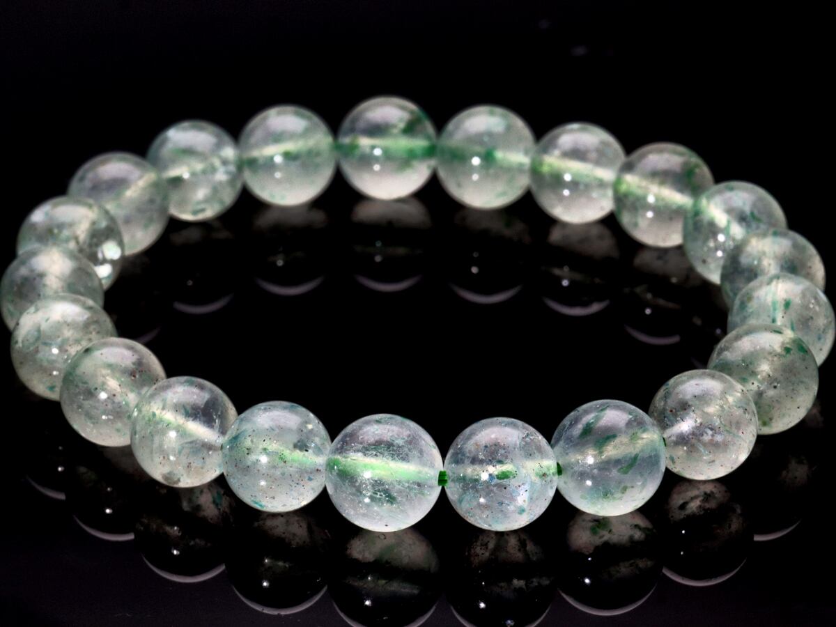 【1点物】天然石ブレスレット フックサイトインクォーツ グリーンマイカ mica Fuchsite クロム雲母 /ラウンド/約9mm/1本 天然石/パワーストーン
