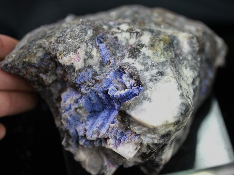 フォスフォシデライトはピンク~パープル系統の色をしていますが、こちらは鮮やかなブルー結晶系統の色をしています。