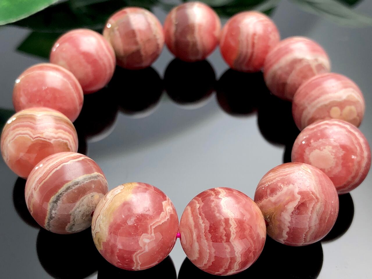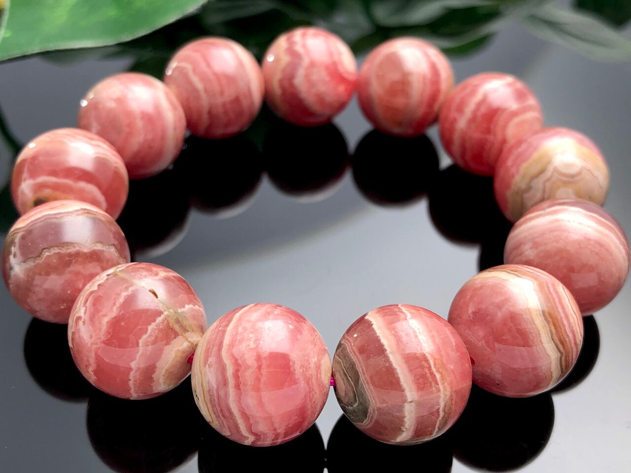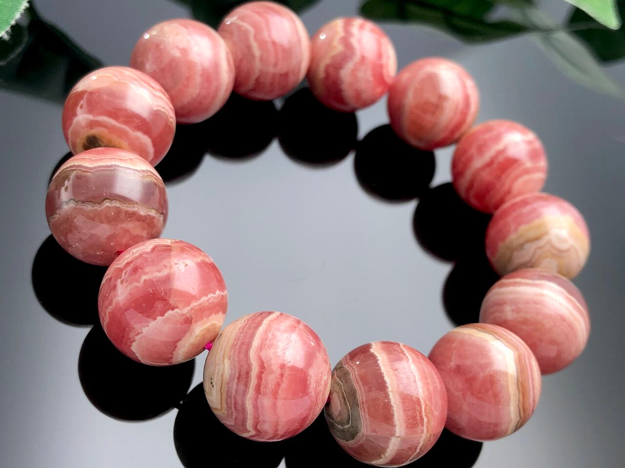 【1点物】天然石ブレスレット インカローズ ロードクロサイト Rhodochrosite /ラウンド/約15mm/1個 アルゼンチン産 天然石/パワーストーン